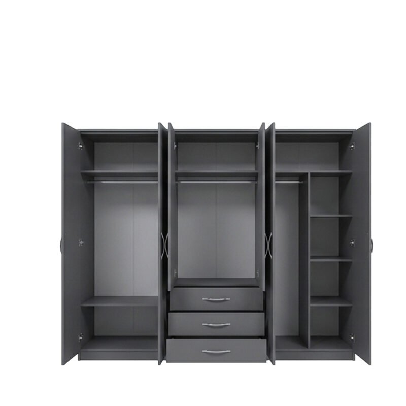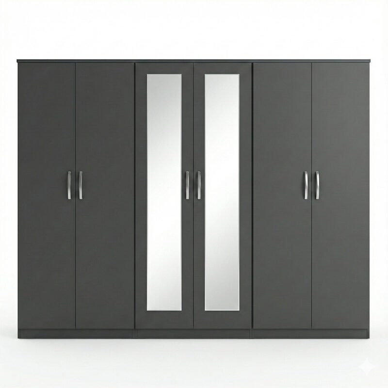 Slate Grey 6-Door Mirror Wardrobe with Central Drawers