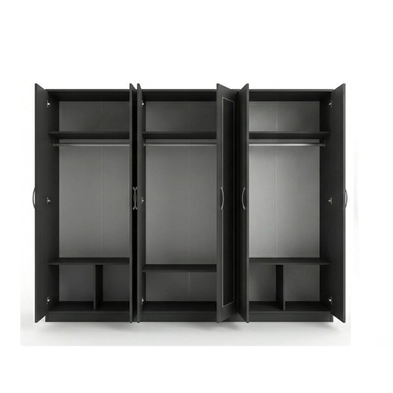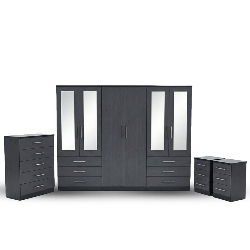 Ebony Black Mirror Wardrobe Set with Drawer Units