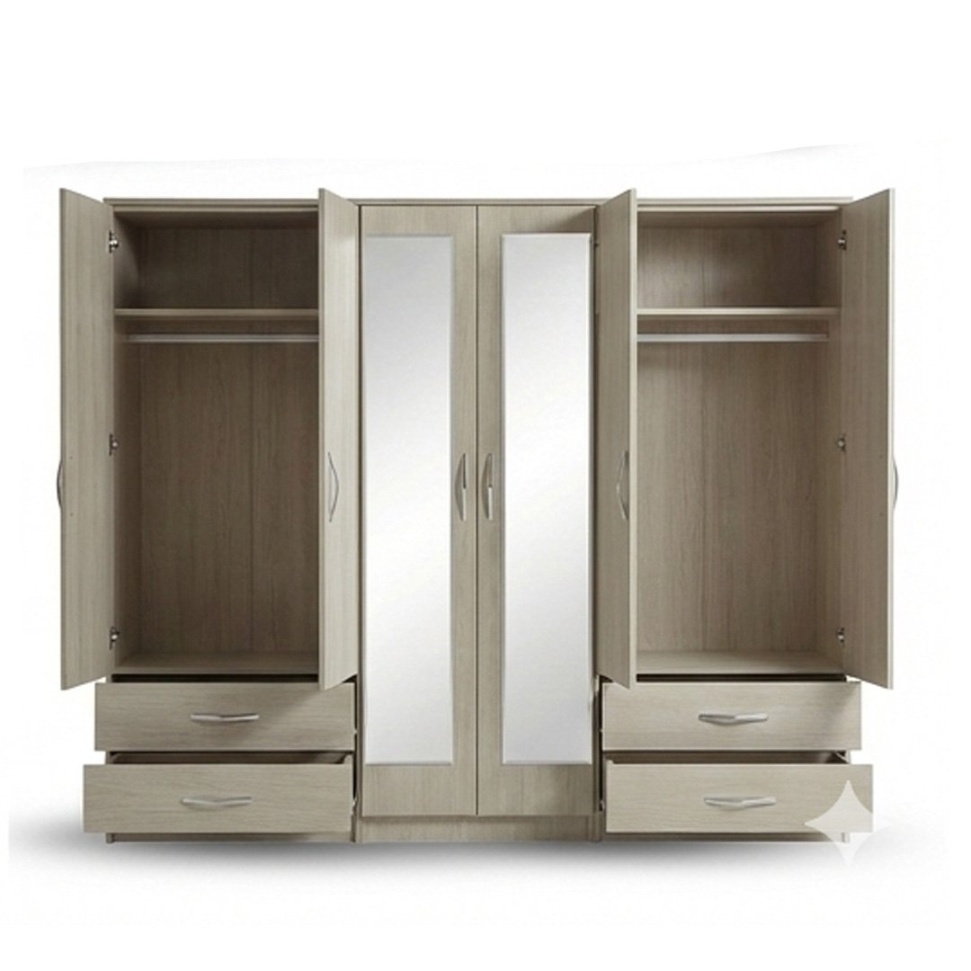Light Oak 5-Door Mirror Wardrobe with Bottom Drawers