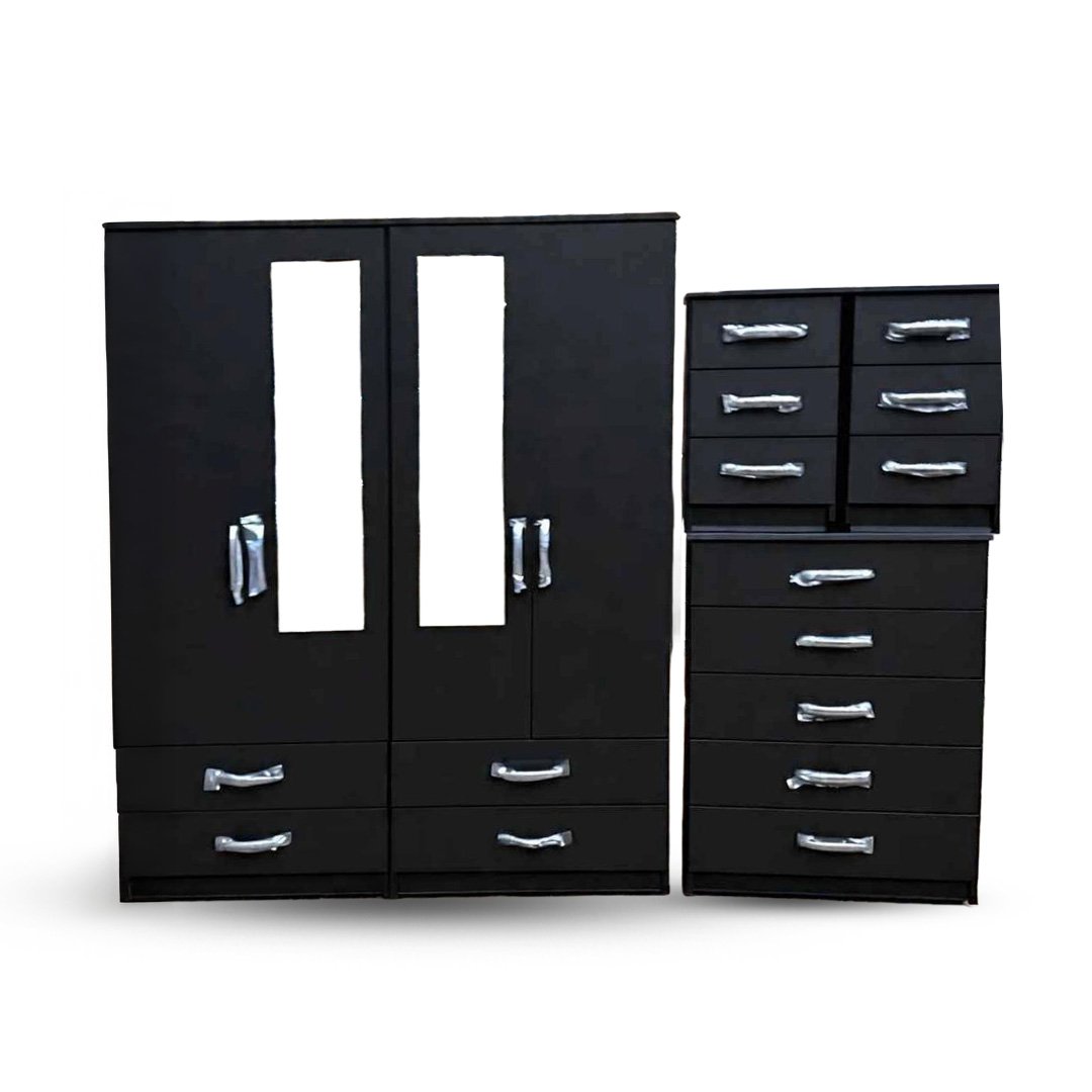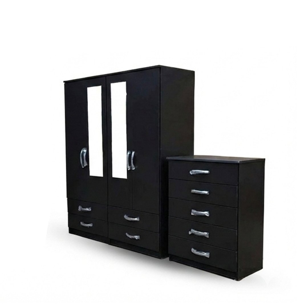 Midnight Black Mirror Wardrobe with Matching Drawer Chest