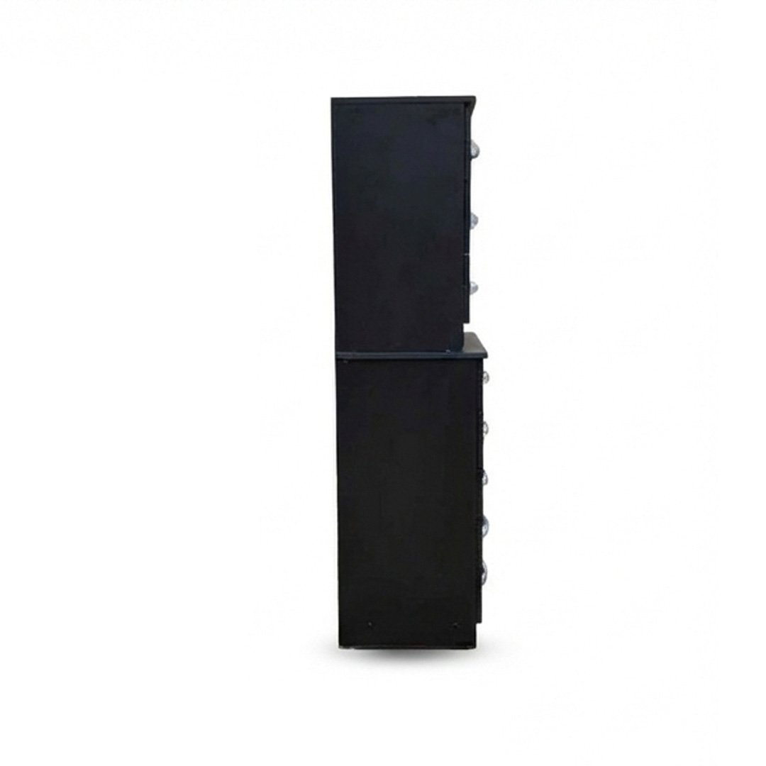 The matching Midnight Black drawer chest complements the wardrobe perfectly, offering multiple drawers for organised storage. Finished with modern metallic handles and a clean design, this set combines durability, style, and functionality—ideal for contemporary interiors.