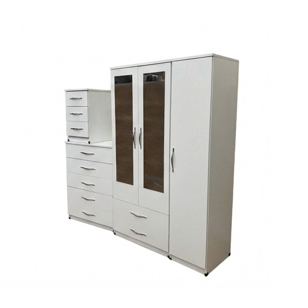 The matching Pure White multi-drawer unit provides ample space for clothes, accessories, and essentials, making this set both practical and stylish. Finished with sleek metallic handles and a durable structure, this wardrobe set is ideal for contemporary and minimal interiors.