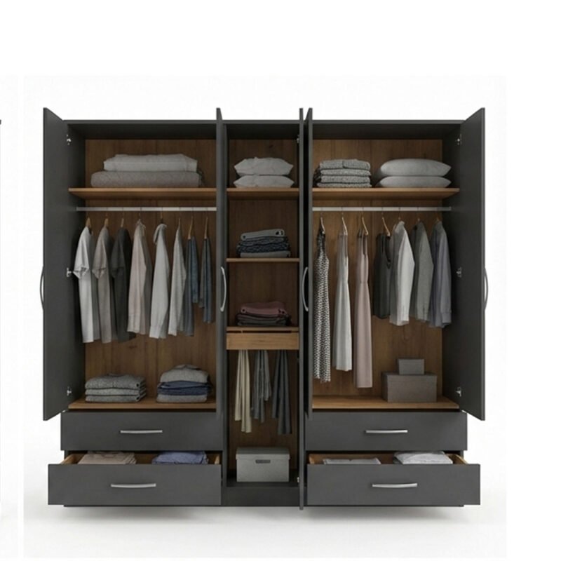 Graphite Grey 4-Door Mirror Wardrobe